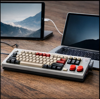 8bitdo 레트로 기계식 키보드는 클래식 콘솔 감성을 현대적으로 재해석한 제품으로, 디자인과 타건감을 동시에 만족시키는 것이 가장 큰 특징입니다. 8bitdo 키보드 시리즈는 닌텐도 NES, 패미컴 스타일을 연상시키는 컬러 조합과 레트로 감성을 전면에 내세워 차별화된 외형을 제공합니다.