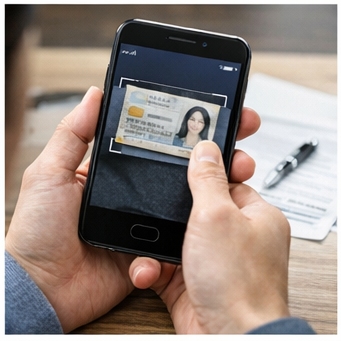 카메라로 신분증을 촬영하고, 휴대폰 인증을 진행합니다.