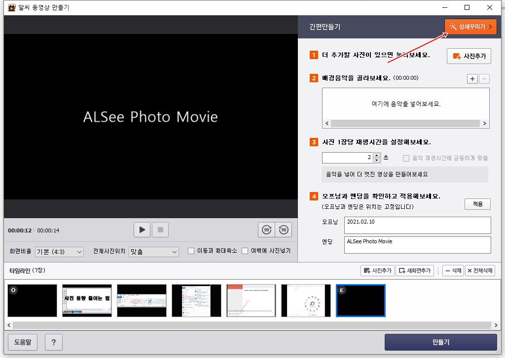 3. 좀 더 다양한 장면을 연출을 하고 싶다면 상세 꾸미기 버튼을 클릭하여 주세요!