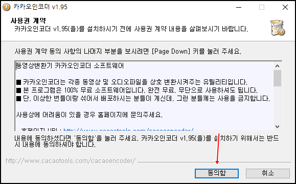 5. 설치 마법사가 실행이 되면 동의함 버튼을 클릭하세요!