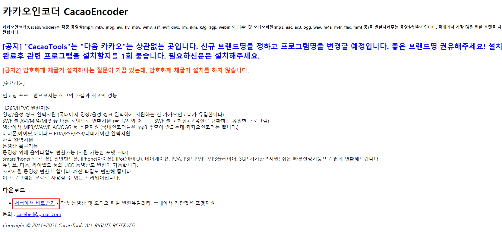 1. 검색 사이트에 "카카오인코더"로 검색을 하시면 위와 같이 배포 사이트를 확인을 할 수가 있습니다.