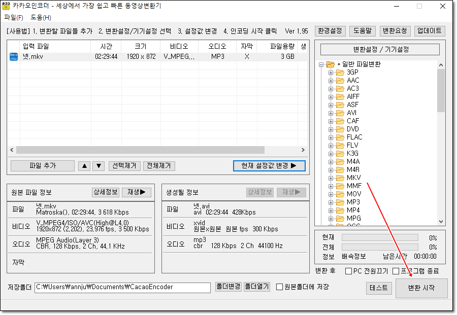 카카오인코더를 설치를 하였으니 동영상 용량줄이는법에 대해서 확인을 하여 보겠습니다.