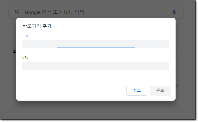 바로가기 이름을 입력을 하지 않아도 주소만 입력을 하고 완료를 클릭하여도 됩니다.