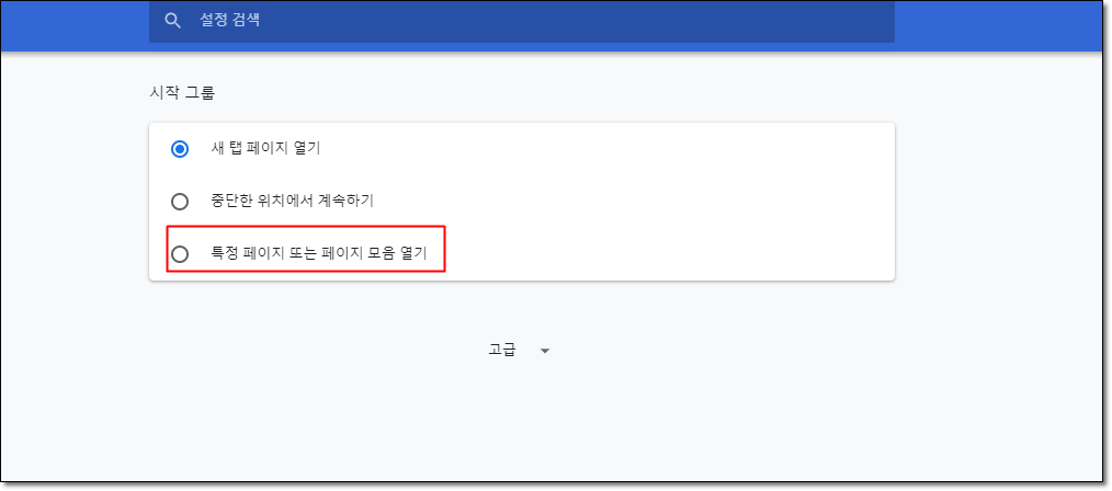 특정 페이지 또는 페이지 모음 열기 항목을 선택하세요!