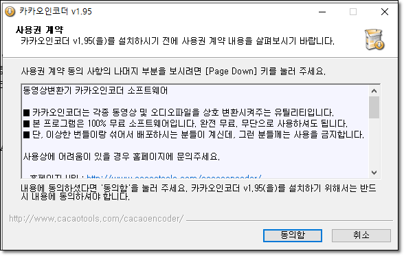 7. mp4 동영상 파일을 mp3 변환 할 수가 있는 카카오인코더 설치 마법사가 실행이 됩니다. 동의함 버튼을 클릭을 하여주세요!