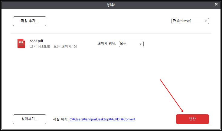 - 변환 버튼을 클릭하면 작업이 완료됩니다.