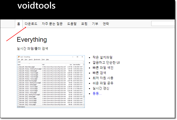 링크를 걸어놓은 voidtools 홈페이지에 접속해 주세요.