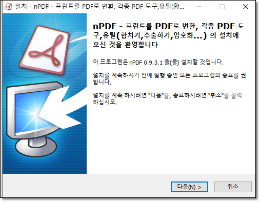 이 글의 아래쪽에 nPDF 설치 파일을 다운로드한 후 다운로드한 파일을 두 번 클릭하여 실행합니다.