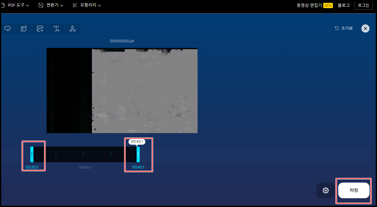 2.동영상이 업로드되면 시간바를 이용하여 원하는 부분을 드래그 앤 드롭하여 자를 범위를 선택합니다.