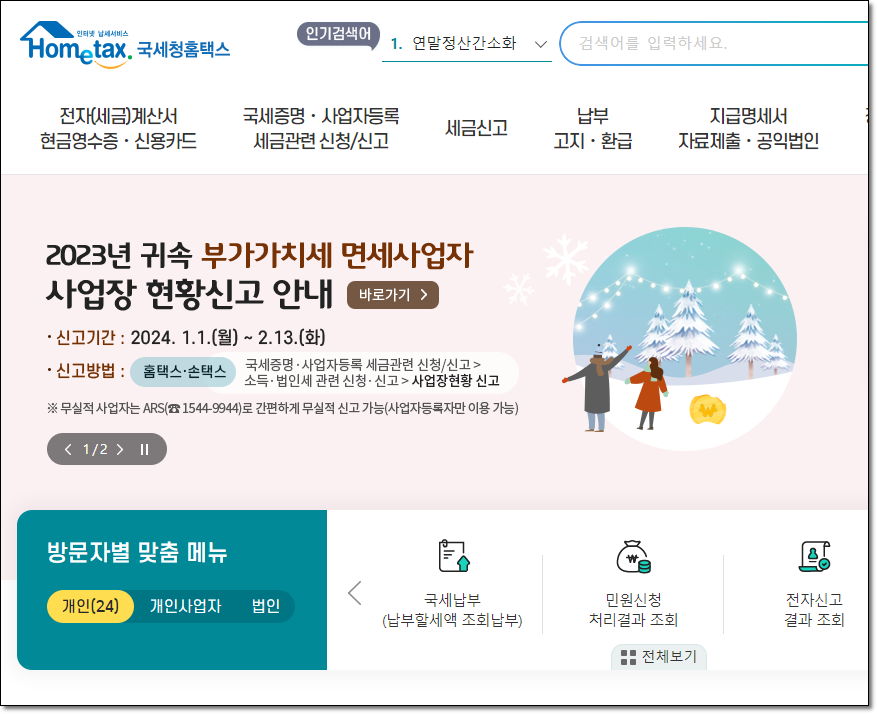 - 홈택스 홈페이지 접속